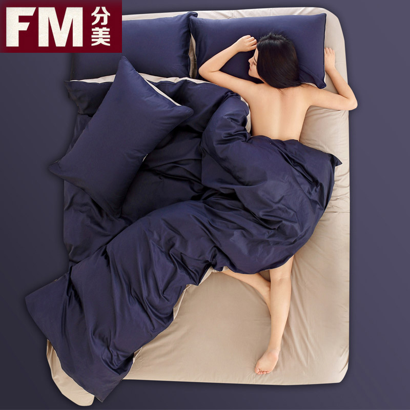 商品名称:简约纯色全棉四件套纯棉4床上用品三件套1.5米1.8m床单被套单床笠 高密优质全棉 零风险抢购 送运费险