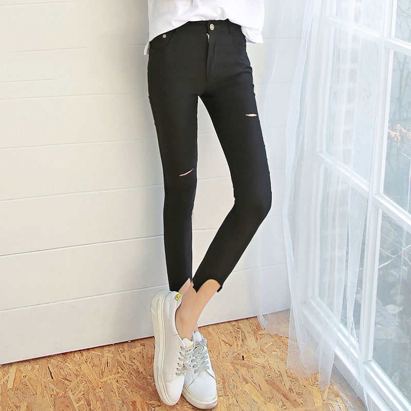 韩都衣舍2017春季新款不加绒薄款破洞外穿打底裤女九分裤韩版夏季 领券下单立减/单件包邮/先拍先发货!